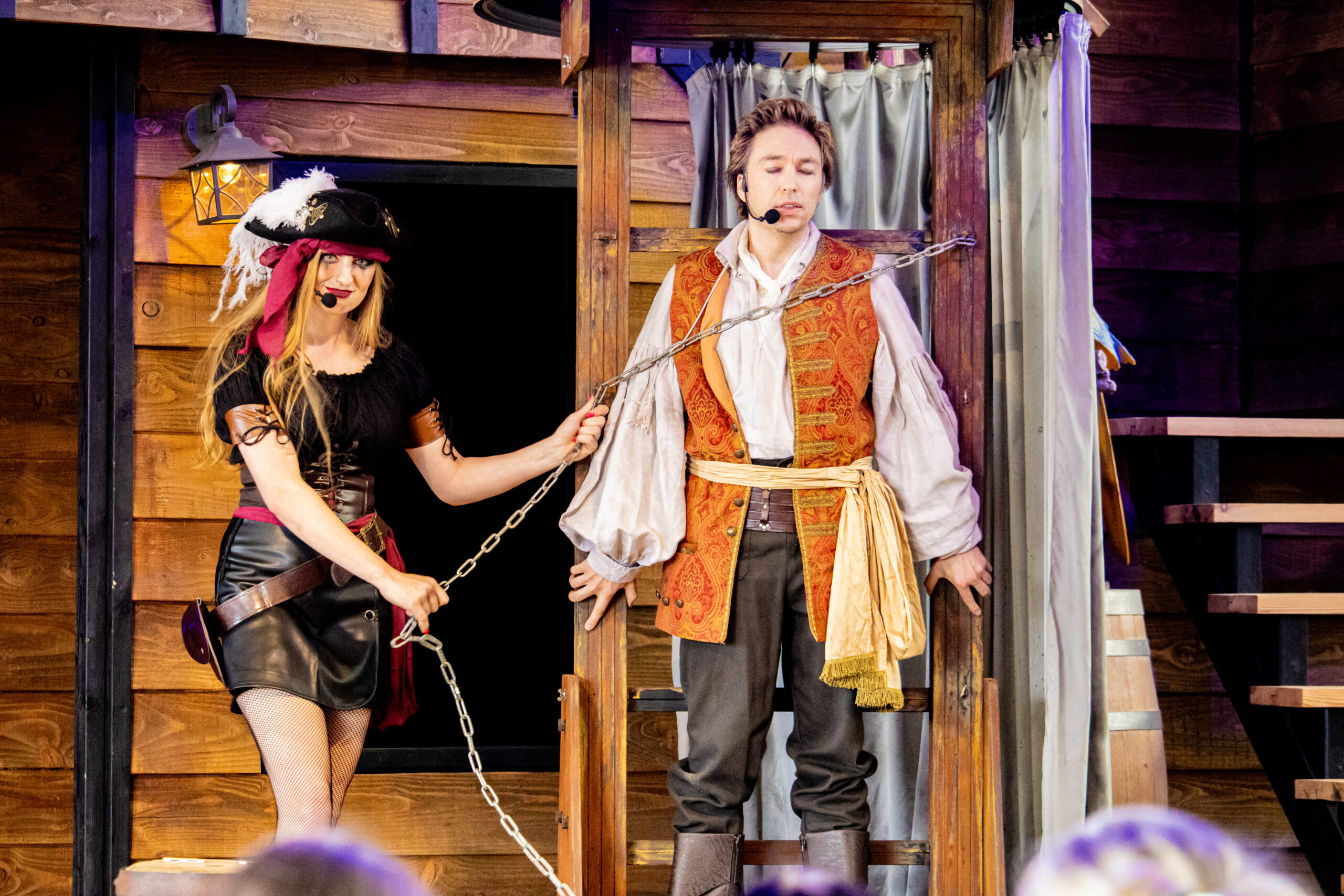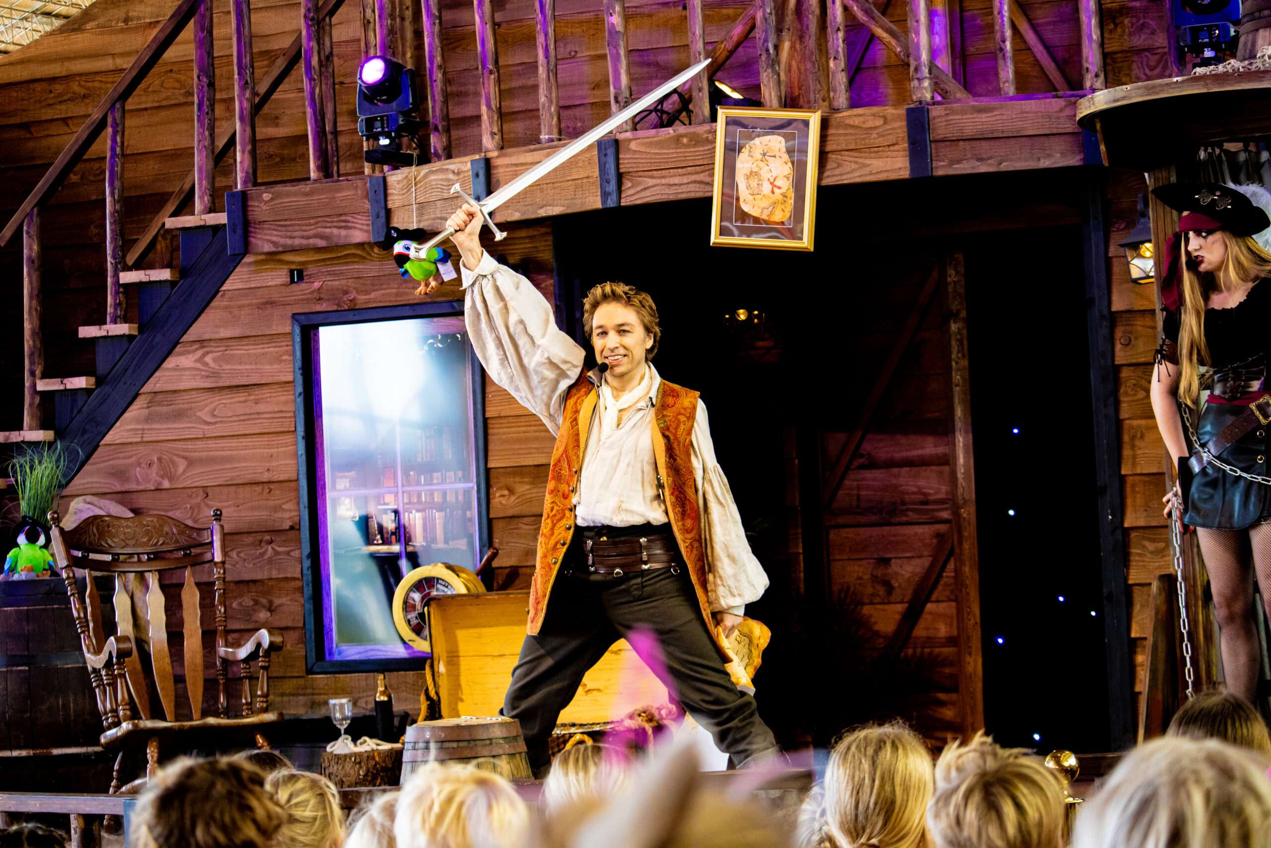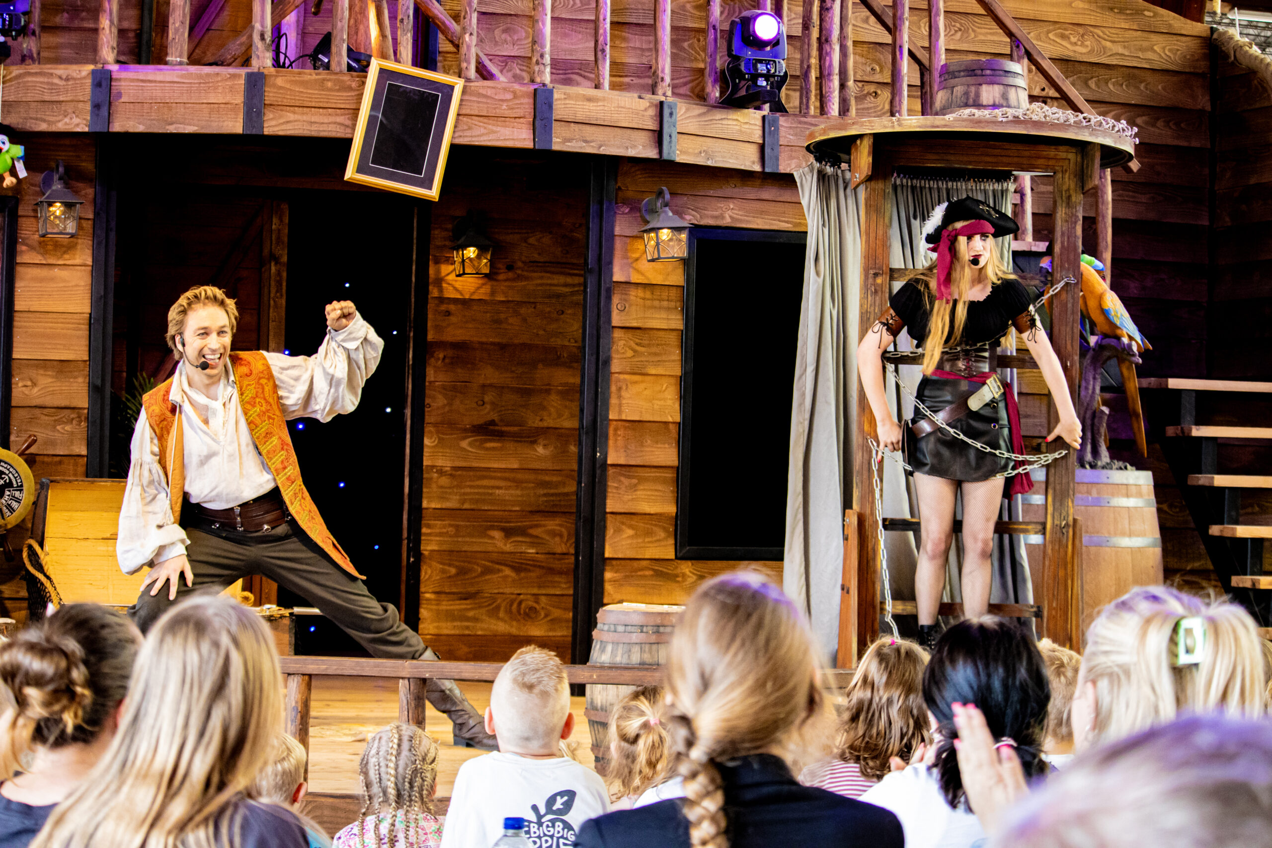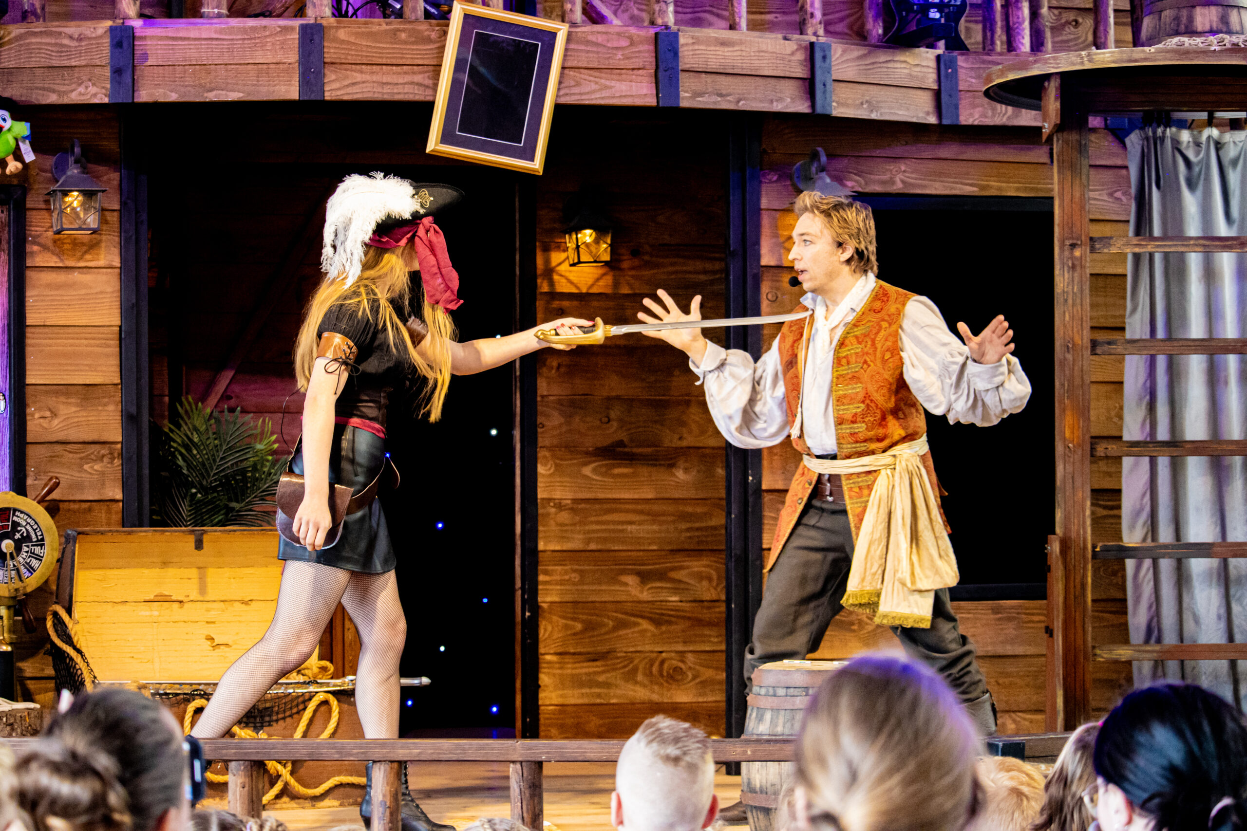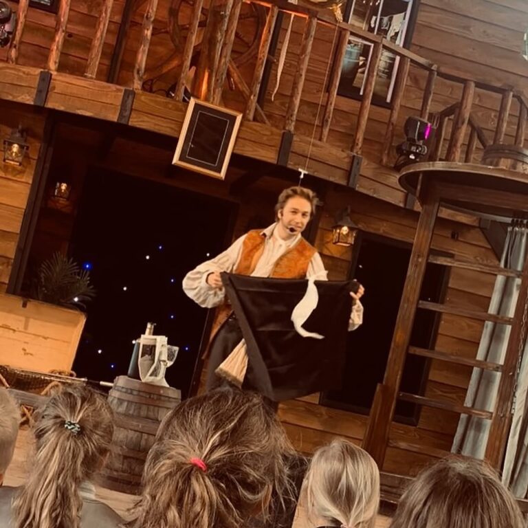Foto’s van de parkshow Magius Bay op atractiepark SchatEiland in Zeumeren, een 20 minuten durende show vol leuke trucs voor jong en oud.